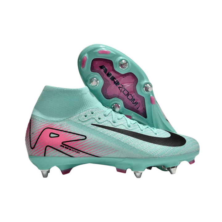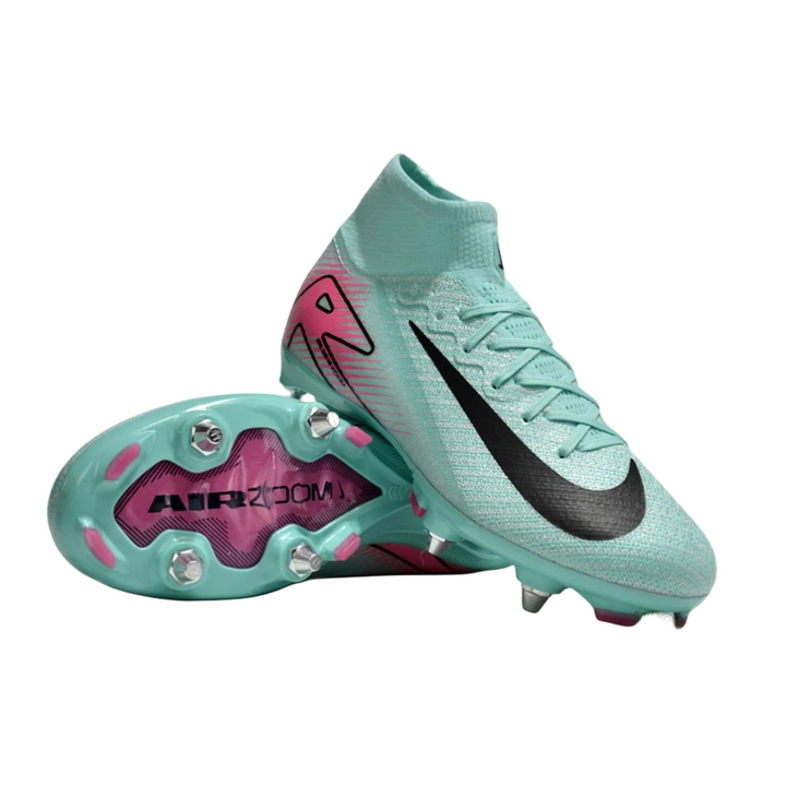 ⚡ Velocidad pura, control absoluto. Los Mercurial Superfly 11 Aguamarina SG están diseñados para los jugadores más explosivos, aquellos que necesitan un ajuste ceñido y una suela que potencie cada arranque. Su innovadora tecnología te permite moverte con rapidez y seguridad, sin perder el control del balón.