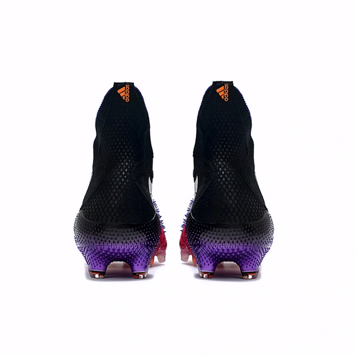 El diseño en negro con detalles morados no solo aporta un toque de estilo audaz, sino que también refleja la confianza y la potencia de los futbolistas que los usan. Con un ajuste cómodo y un soporte ideal para el tobillo, estos guayos aseguran que cada movimiento se realice con la máxima seguridad y rendimiento.
