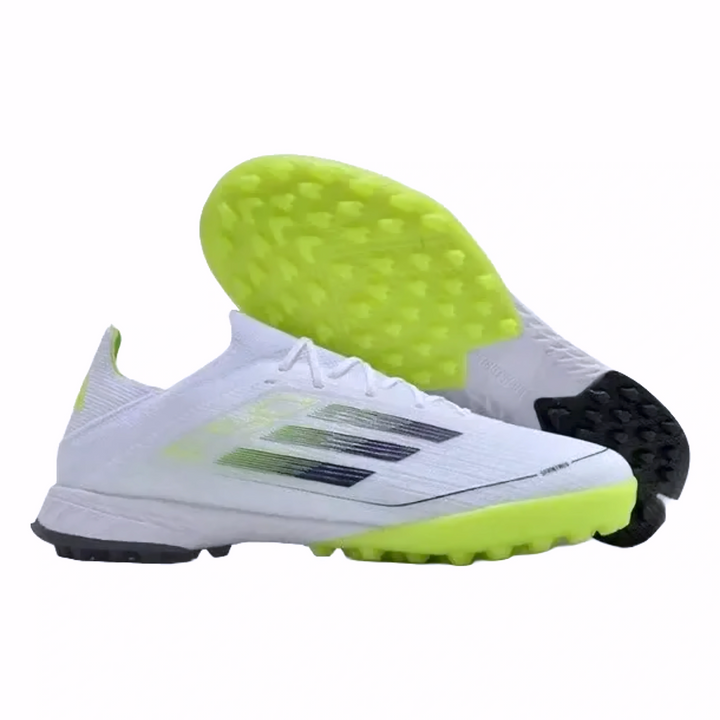 Los Torretín F50 Elite Blanco Verde Niño combinan ligereza y control superior para terrenos artificiales. Su parte superior de alta calidad asegura un ajuste anatómico y un toque excepcional del balón.